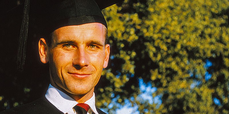 My father-in-law, two years after coming to the United States, graduating from Stanford University. Photo taken by one of his younger brothers. Slide scanned and color corrected by JJS